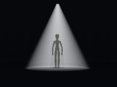 This is another rig using a single point light.  This its behind the figure so it shines on both the top of their head and the bottom of their feet.